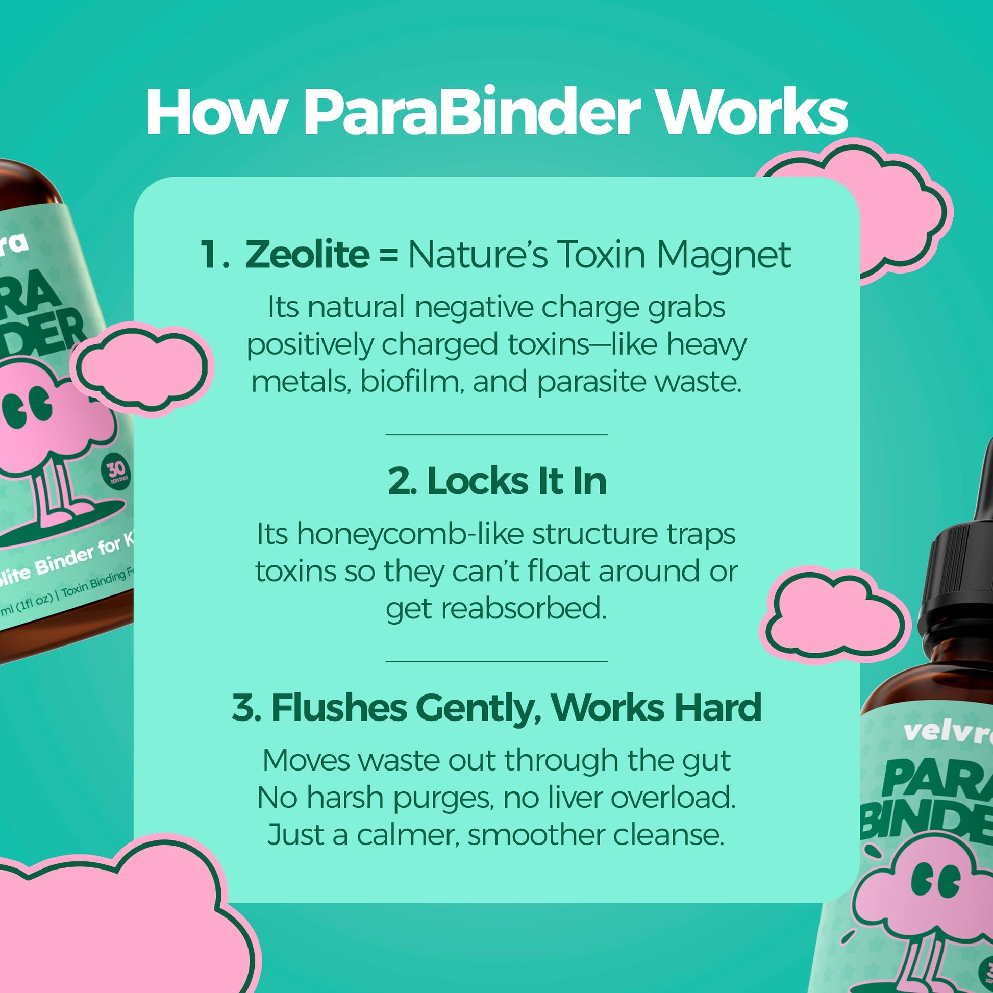ParaBinder's premium zeolite acts like a powerful magnet, instantly binding to toxic debris and escorting it out of your child's system.