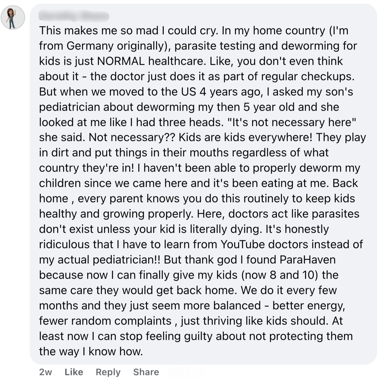 This is one of the biggest gaps in American healthcare. US medical training focuses on treating severe symptoms rather than preventive care, and doctors only test for parasites when children have dramatic symptoms like bloody diarrhea or recent international travel. Even then, standard tests miss 50-70% of infections because parasites don't shed eggs consistently. Meanwhile, countries like Germany require parasite clearance certificates for school enrollment, and Brazil does routine family cleanses every 6 months. It's not your doctor's fault - they're simply not trained to look for something that 162 other countries consider basic preventive healthcare.