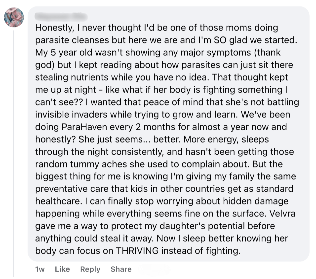You're not risking your money; you're investing in a potential solution with full protection. Compare this to the ongoing costs of doctor visits, supplements, and other treatments that haven't worked. Many families spend more than this on failed solutions in a single month. With our guarantee, you can try ParaHaven completely risk-free.