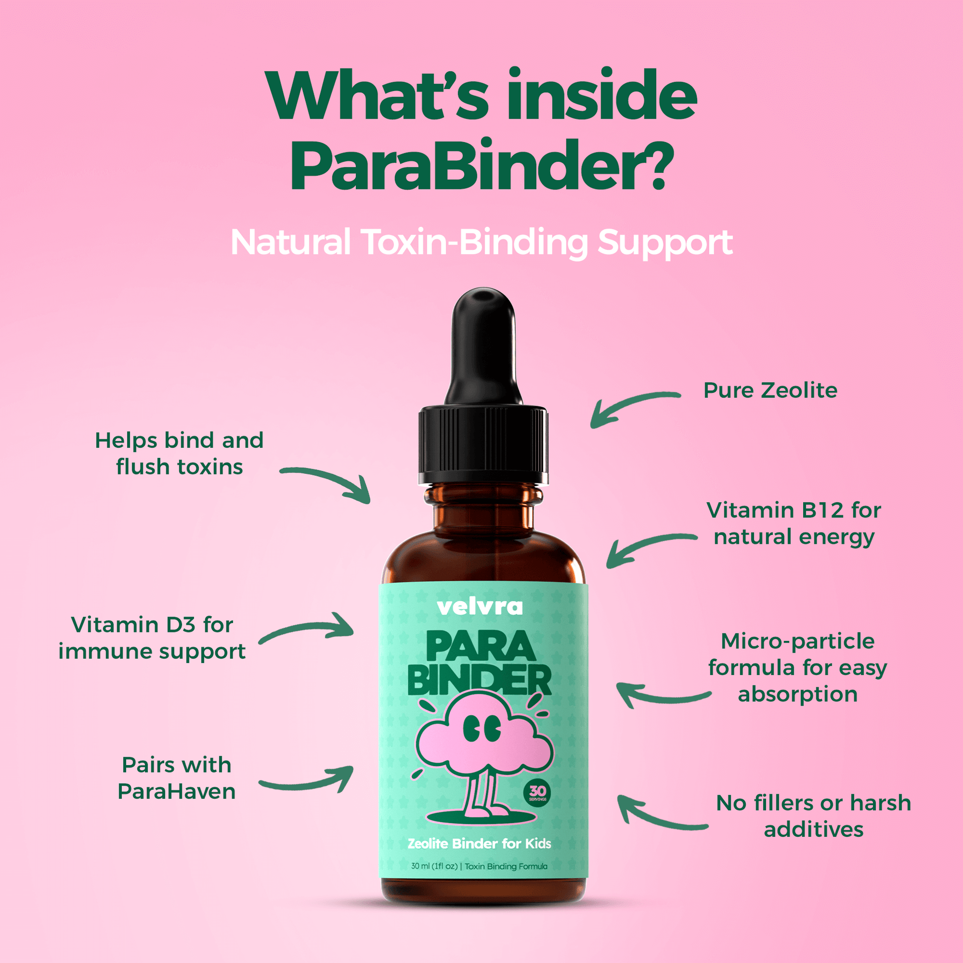 Normally, your child’s body will work to expel this on its own—but sometimes, that buildup happens faster than it can keep up. That’s where ParaBinder helps.