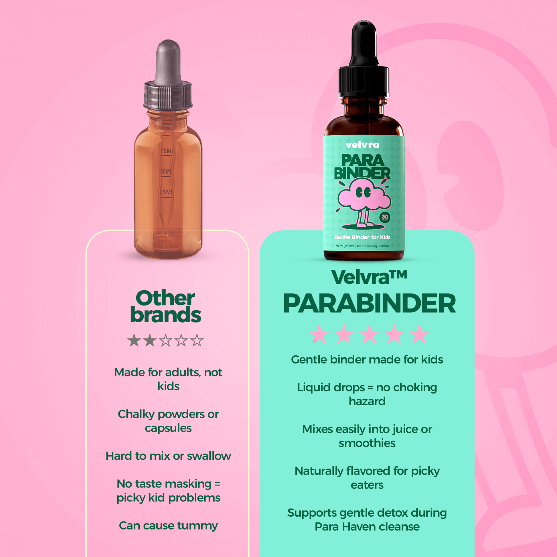 Already using ParaHaven? ParaBinder just makes the ride smoother. But if it doesn’t help your child feel better during the cleanse—less bloating, better mood, easier days—just let us know within 30 days. We’ll make it right.